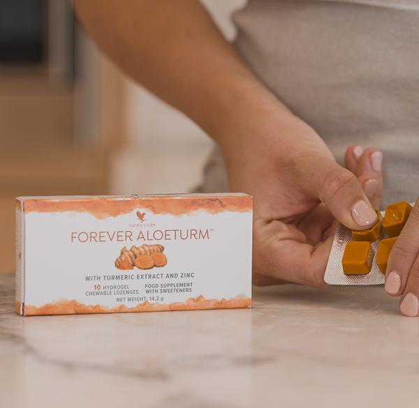 Αλλά μια από τις μεγαλύτερες προκλήσεις με τον κουρκουμά είναι η χαμηλή του απορρόφηση από τον οργανισμό. Με την καινοτόμο τεχνολογία στο ζελεδάκι, το Forever AloeTurm λύνει αυτό το πρόβλημα αφού διαλύεται στο στόμα σας και απορροφάται απευθείας από τον
